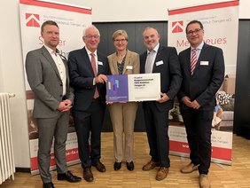 Foto 2: vbw-Verbandsdirektorin Dr. Iris Beuerle überreichte das Jubiläumsschild