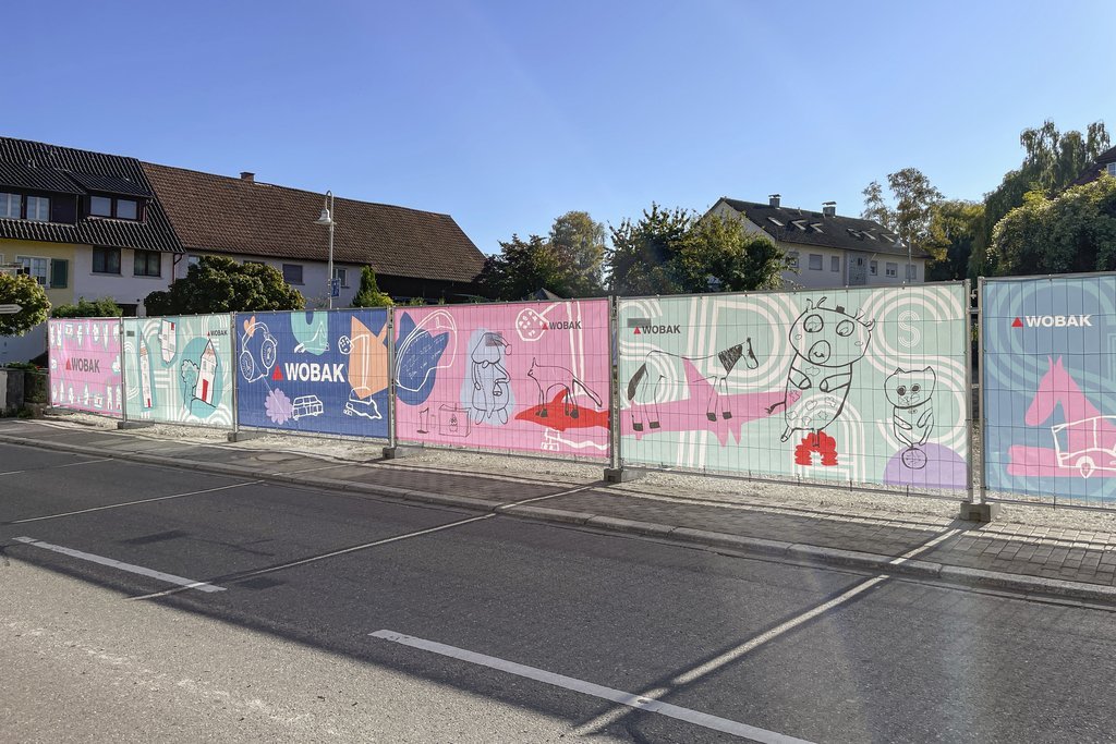 Im Konstanzer Stadtteil Litzelstetten hat die Städtische Wohnungsbaugesellschaft WOBAK in der Ortsmitte ein altes Gebäude abgerissen. Das Gelände liegt derzeit brach, weswegen zur Verkehrssicherung ein Bauzaun aufgestellt werden musste. Damit stellte sich die Frage: Wie kann dieser Zaun inmitten des Ortes das Grundstück nicht nur sichern, sondern wie kann er auch schön aussehen?
