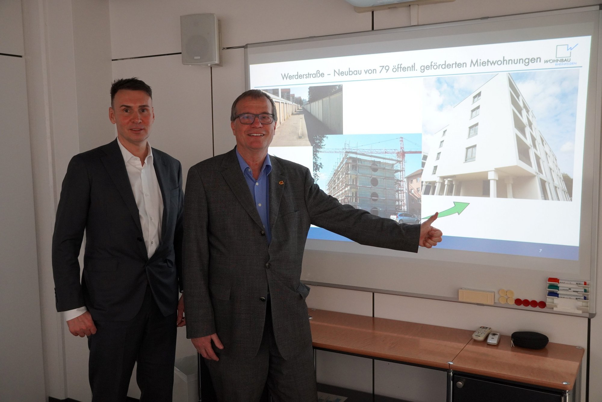 Foto: Geschäftsführer Markus Schwamm und Oberbürgermeister Klaus Eberhardt berichten über die Projekte und Planungen der Städtischen Wohnungsbaugesellschaft mbH Rheinfelden