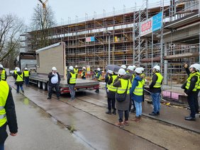 Am 18. Februar war es möglich, fliegenden Fassaden und der Montage vor Ort zu sehen und einen Blick hinter die vorgefertigte neue Gebäudehülle zu werfen. Best Practices konnte mit den beteiligten Akteuren diskutiert und Expertentipps mitgenommen werden. Eine informative Veranstaltung zu einem bemerkenswerten Projekt. Denn Badwiesen 2030 verbindet Tradition mit Innovation, interpretiert das genossenschaftliche Prinzip neu und zeigt damit, wie genossenschaftliches Wohnen 2.0 aussehen kann.