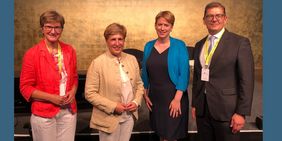 Foto (v.l.n.r.): Bei der Auftaktveranstaltung des Strategiedialog Bauen und Wohnen am 29. Juni 2022 - vbw-Verbandsdirektorin Dr. Iris Beuerle, Ministerin für Landesentwicklung und Wohnen BW Nicole Razavi, Staatssekretärin Andrea Lindlohr, MdL BW, vbw-Verbandsvorsitzender Peter Bresinski