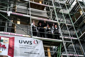 Die UWS Ulmer Wohnungs- und Siedlungs-Gesellschaft mbH feierte am 17.01.2025 im Beisein von Ministerin Nicole Razavi Richtfest auf dem ehemaligen Kasernenareal im Baugebiet Weinberg am Ulmer Eselsberg. Auf dem Grundstück entlang des Schafgarbenwegs hat die UWS zusammen mit zwei Baugemeinschaften ein Anker-Anlieger-Projekt entwickelt. In dem neuen Projekt werden über 250 Menschen gemeinsam wohnen und leben. Die UWS steht für bezahlbares Wohnen und wird 40 % ihrer 63 Wohnungen dauerhaft als geförderte Wohnungen im Quartier anbieten. Gemeinsam mit den nicht preisgebundenen Wohnungen und den Eigentümern der Baugemeinschaften ist für Vielfalt und langfristig soziale Stabilität im Quartier vorgesorgt. Auf dem gemeinsamen Innenhof sind Aktivitäten und Treffen aller Bewohnerinnen und Bewohner geplant.